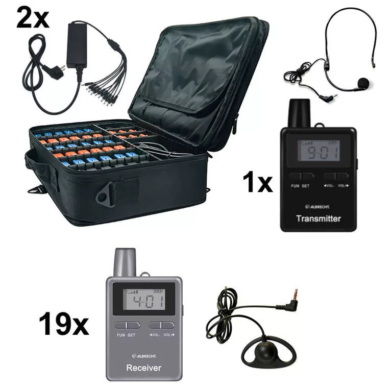 Az Albrecht ATR400 Tourist Guide adó/vevő szett ideális választás csoportos idegenvezetéshez. Kisméretű, könnyű készülékei a 2,4 GHz-es ISM sávon zavartalan, digitális átvitelű kommunikációt biztosítanak akár 200 méteres távolságban.