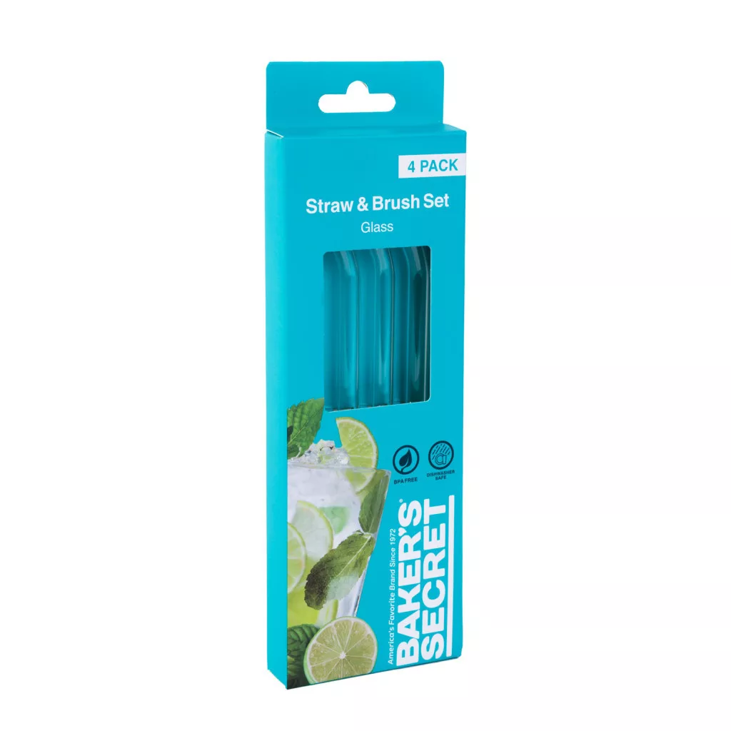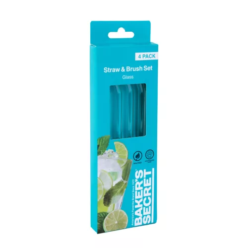 Baker's Secret - átlátszó üveg szívószál - 3 db hajlított +1 db tisztító kefe
