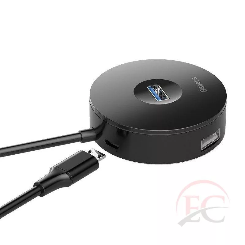 A Baseus Round box egy kedvező árú, hagyományos USB elosztó, 3 db USB 2.0 és 1 db USB 3.0 porttal továbbá 1 db bónusz micro USB port. Segítségével könnyedén csatlakoztathatunk gépünkhöz egeret, billentyűzetet vagy egyéb perifériákat. Az USB 3.0 port támogatja az 5Gbps adatátviteli sebességet, így villámgyorsan másolhatsz adatokat egy erre alkalmas pendrive-ra. Praktikus kialakításának köszönhetően, kis helyet foglal, és könnyedén szállítható a laptop táskájában. Az elosztó 15 cm hosszú hagyományos USB-A kábellel csatlakoztatható számítógépünkhöz.  Portok: