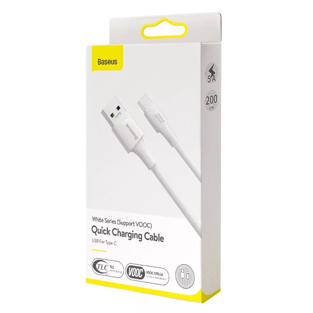 Baseus CATSW-G02 USB/USB-C adat- és töltőkábel, VOOC Quick Charge 3.0 gyorstöltés, 5A, 2m, fehér