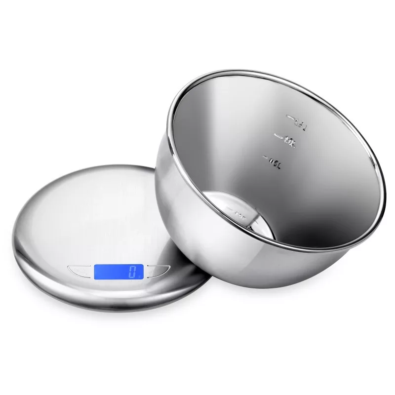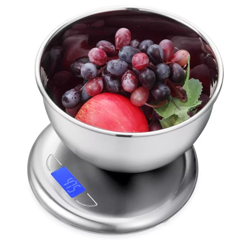 Digitális konyhai mérleg, tálal (5 kg) rozsdamentes acél (B-5156) Ez a digitális konyhai mérleg egy praktikus eszköz lehet a pontos mérésekhez, és a rozsdamentes acél tál pedig további kényelmet nyújt a mérési folyamatok során. A mérleg maximális teherbírása 5 kg, így sokféle mérési igényt kielégít. A mérleg működéséhez 2 darab AAA elemre van szükség. A mérleg automatikusan kikapcsol, ami energia megtakarítást tesz lehetővé, ha a mérleg nem használatos. A mérleghez tartozik egy 1,5 literes rozsdamentes acél tál, amely praktikus és esztétikus. Leírás: