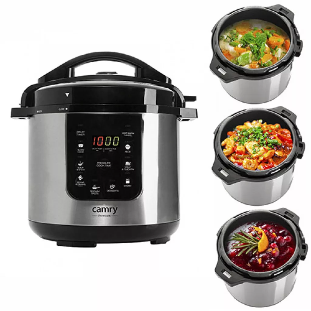 Manapság, amikor gyakran sietünk, szeretnénk kiküszöbölni a felesleges tevékenységeket. A konyhában is, még akkor is, ha szeretünk főzni, az hatékony időmegtakarítást részesítjük előnyben. Ezért javasoljuk ügyfeleinknek a CAMRY CR 6409 nyomásfőzőt, amely az elvégzendő munkák nagy részét elvégzi, hogy ízletes ebédet vagy meleg vacsorát készítsünk az egész család számára! Egyetemességét különösen azok az emberek fogják értékelni, akiknek nincs sok szabad idejük a főzéshez, de tényleg meleg, egészséges és kiegyensúlyozott ételeket akarnak enni. Rozsdamentes acélból, eltávolítható belső tál ,8 előre meghatározott program, késleltetett indítási funkció, időzítő nyomásos főzési funkció Lassú főzés funkció ,melegen tartó funkció Teljesítmény: 1000W Maximális teljesítmény: 1500W kapacitás: 6L kiegészítők: kondenzátor csésze, mérőpohár és kanál Rövid leírás :