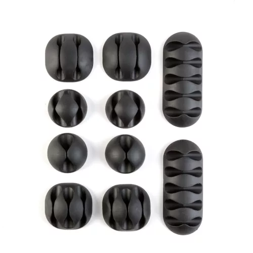 Tartsa rendezett állapotban a kábeleit az asztalra rakható, öntapadós szilikon kábelrendezővel! Ez a praktikus és esztétikus megoldás segít megelőzni a kábelkáoszt és biztosítja, hogy minden kábele kéznél legyen, amikor szüksége van rá. A szett több egységből áll, amelyek mindegyike más-más számú kábel rögzítésére alkalmas, így könnyedén megtalálhatja a megfelelő elrendezést az igényeinek megfelelően. Bármely bútorra egyszerűen telepíthetőek, a rugalmas, tartós, gumi anyagnak köszönhetően, a vájatokba a kábelek egyszerűen belepattinthatóak. A diszkrét, fekete szín bármilyen asztali környezethez illik és nem vonja el a figyelmet a munkaterületről.