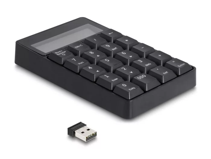 Delock 2 az 1-ben A típusú USB billentyűzet számológép funkcióval, 2,4 GHz, vezeték nélküli, fekete (DL-12113)