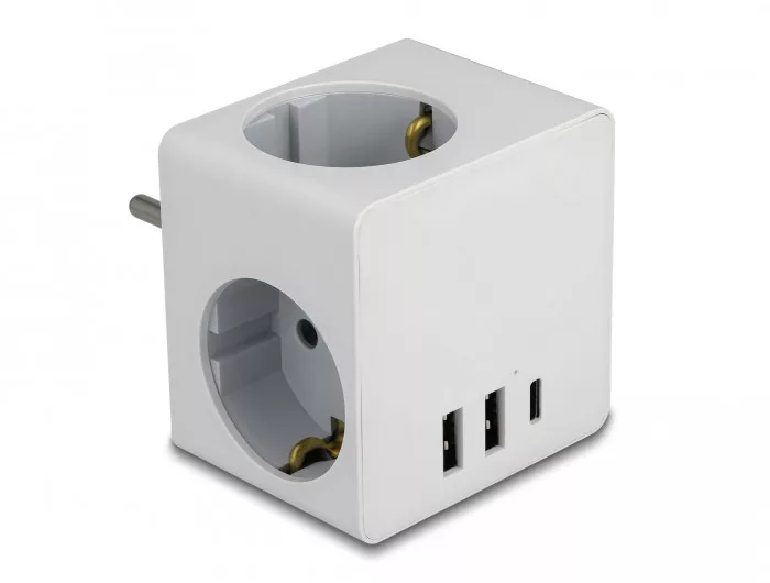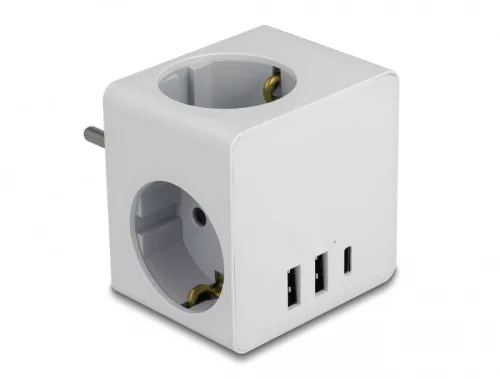 Delock 3-oldalú multi-csatlakozó kocka gyerekzárral és USB töltőfelülettel, fehér (DL-11496)