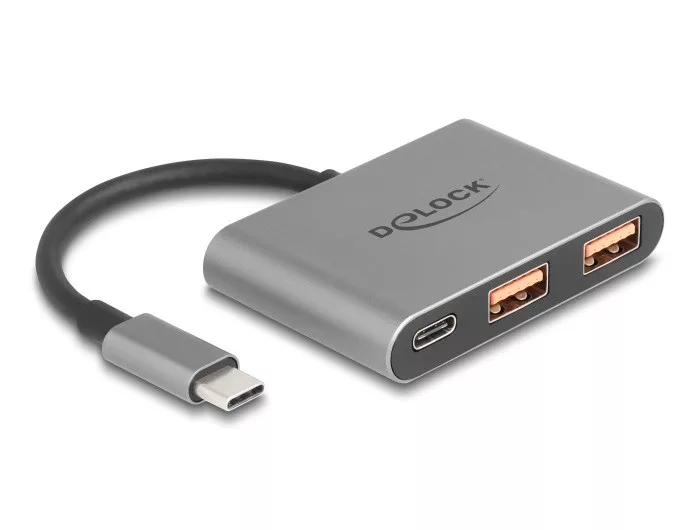 Delock 3 port USB Hub 10 Gbps USB Type-C  csatlakozóval - 1 x USB Type-C  + 2 x A-típusú USB csatlakozó (DL-64337)