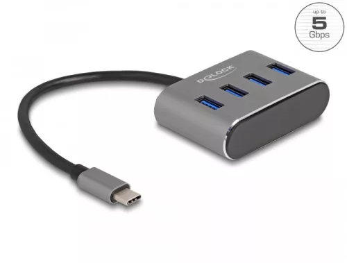 Delock 4 portos USB 3.2 Gen 1 hub USB Type-C csatlakozóval   USB Type-A portok a tetején (DL-63223)