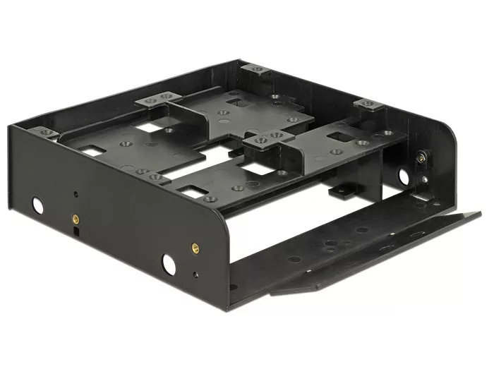 Ez a Delock telepítőkeret egy számítógép 5.25 meghajtó-bővítőhelyén több célra is használható. Az alsó részén egy 3.5 eszköz, például egy kártyaolvasó, a felső részén pedig további két 2.5 merevlemez használatát támogatja. Ezenkívül egy 3.5 eszköz helyett egy 3.5 merevlemez telepítése lehetséges. A telepítéshez el kell távolítani a 3.5 fedelet a keretről és elöl kell behelyezni.