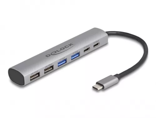 Delock 6 portos USB hub 4 x A-típusú USB anyával és 2 x USB Type-C anya csatlakozóval (DL-64232)
