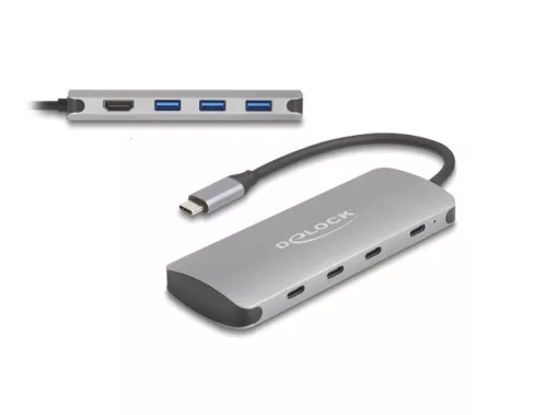 Delock 7 portos USB 10 Gbps Hub és 4K HDMI kimenet USB Type-C  csatlakozóval és PD 3.0 90 Watt (DL-64323)