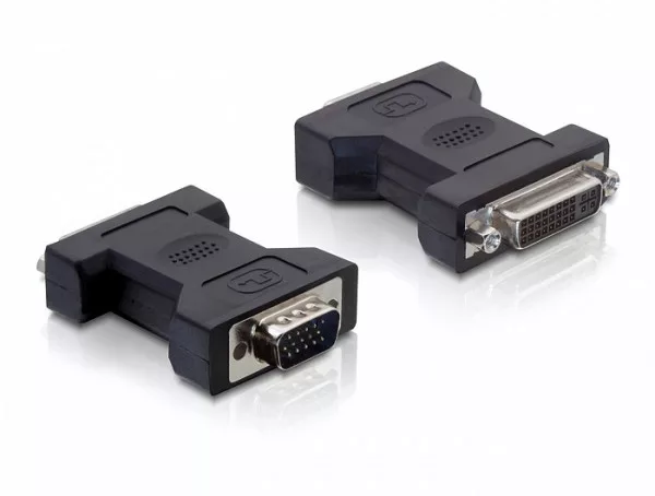 Ez a Delock adapter lehetővé teszi a VGA monitor csatlakozófelületének átalakítását DVI 24+5 portá. Ezen felül csatlakoztathatunk egy monitort a DVI felülethez.