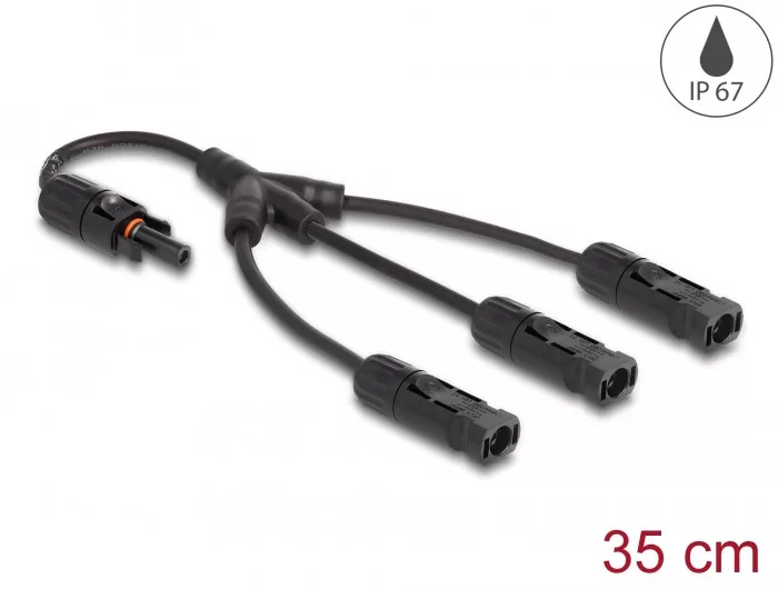 Delock DL4 napelem elosztó kábel 1 x anya és 3 x duga 35 cm fekete (DL-88225)