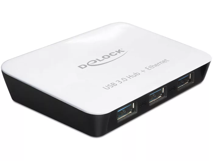 Delock HUB USB 3.0 3 port + 1 port Gigabit LAN 10/100/1000 Mb/s, fehér-fekete (DL-62431)