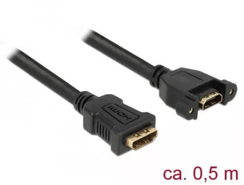 Delock Kábel, HDMI-A hüvely > HDMI-A hüvely, panelrögzítés, 4K 30 Hz 0,5 m (DL-85465)