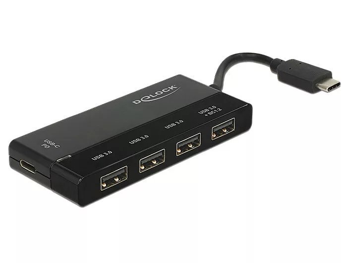 Delock Külso, USB 3.1 Gen 1 elosztó, USB Type-C > 4 x USB A-típusú + 1 x USB Type-C PD (DL-62793)
