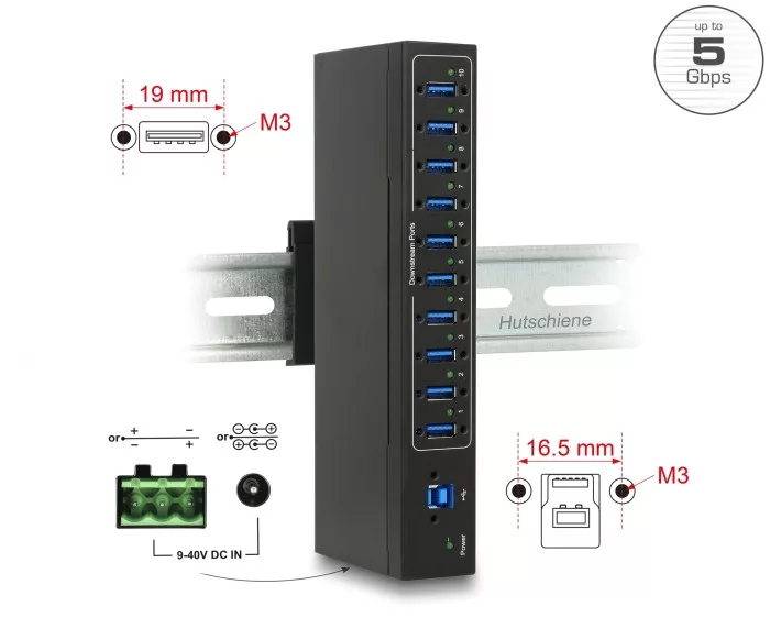 Delock Külso ipari hub 10 x USB 3.0 A-típusú 20 kV ESD védelemmel (DL-63919)