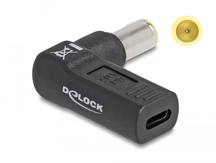 Delock Laptop töltőkábel adapter USB Type-C  anya - IBM 7,9 x 5,5 mm apa 90  fokban hajlított (DL-60012)
