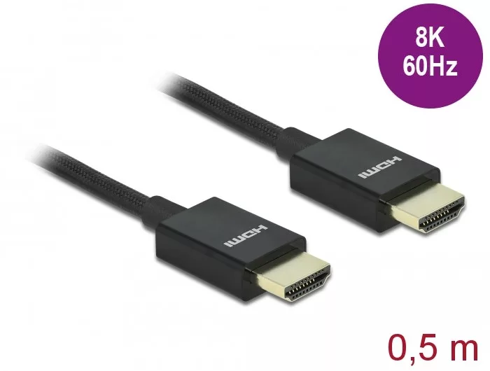 Delock Nagysebességű HDMI -kábel koax 48 Gbps 8K 60 Hz, fekete 0,5 m (DL-85383)