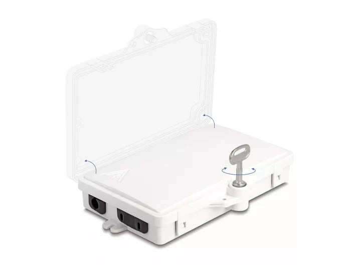Delock Optikai szál elosztó doboz beltéri és kültéri használatra IP65 vízálló, zárható 2 portos fehér (DL-87899)