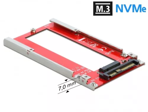 Ez a Delock átalakító lehetové teszi egy M.3 / NF1 (NGSFF) SSD kapcsolat létesítését. Egy M.3 modul 110 mm hosszúsággal és 30 mm szélességgel csatlakoztatható. Az átalakítót egy 68 tus U.2-csatolón keresztül telepítheti a rendszer belsejébe.