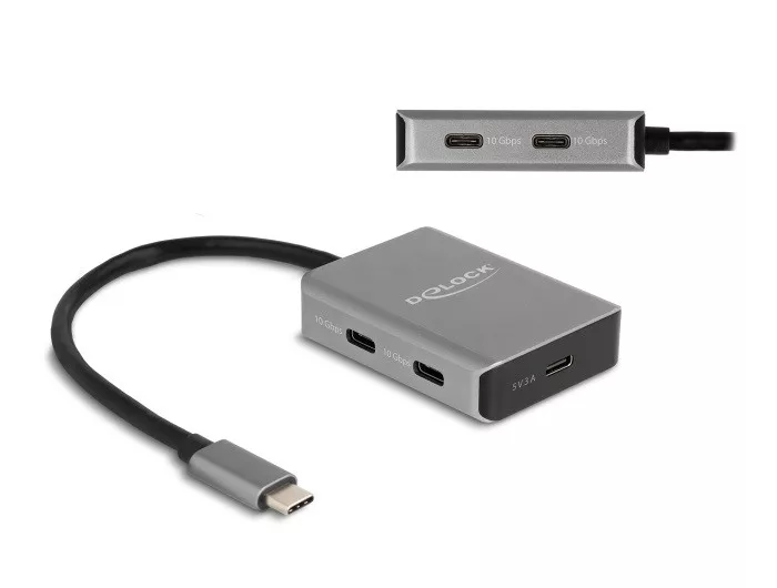 Delock USB 10 Gbps Tetején 4 USB porttal rendelkező USB Type-C hub USB Type-C csatlakoztatóval (DL-64249)