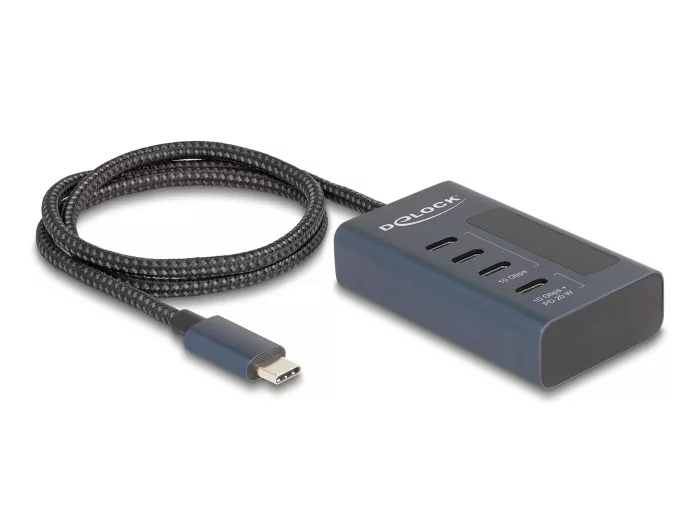 Delock USB 10 Gbps hub 4 db. USB Type-C  porttal, amelyből 3 adat csatlakoztatási felület és egy adat és 20 Watt-os PD tápjelzéssel (DL-64189)