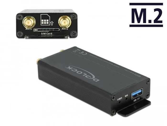 A robosztus ház megvédi a beépített M.2 modult a károsodástól például menetközbeni használatkor. A kér SMA antenna konnektor és a hozzá tartozó antennák segítségével fogható rádiójel úgy, mint LTE, vagy az egyik antenna használható 2,4 GHz-en és a másik 5 GHz-en WiFi mód használatakor.