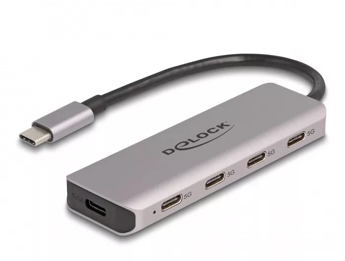 Delock USB 5 Gbps Tetején 4 USB porttal rendelkező USB Type-C hub USB Type-C csatlakoztatóval (DL-64238)