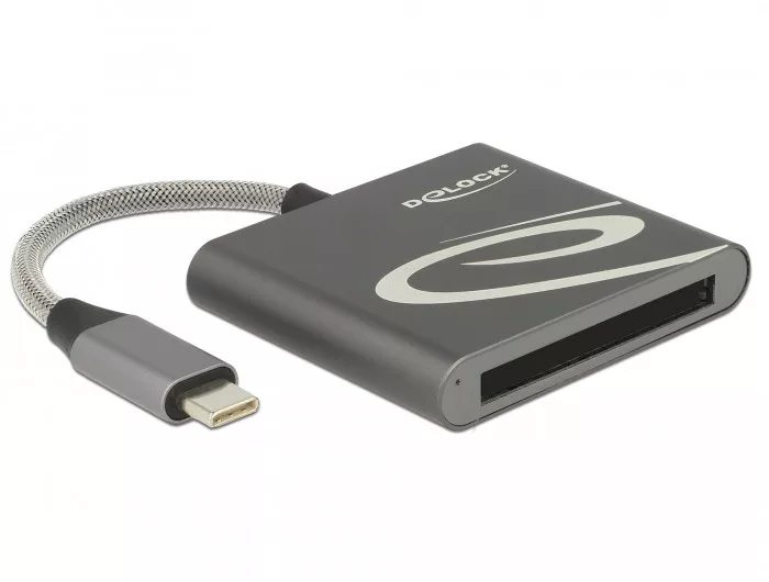 A Delock kártyaolvasó használható CFast memóriakártyák olvasásához és írásához. A kártyaolvasó asztali vagy hordozható számítógéphez csatlakoztatható az USB Type-C -csatolón keresztül.