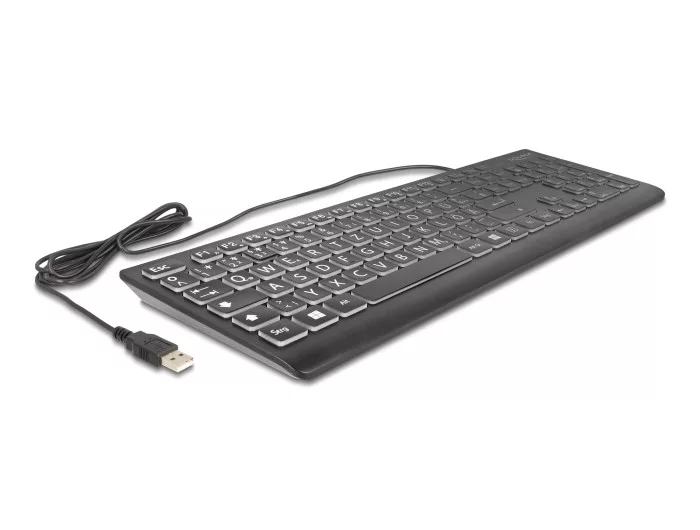 Delock USB billentyűzet vezetékes 1,5 m fekete XXL betűkkel és megvilágítással (DL-12170)