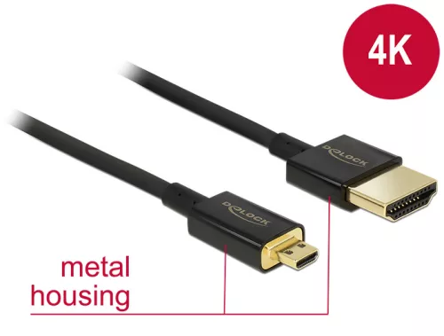 Delock kábel High Speed HDMI Ethernet - HDMI-A apa > HDMI Micro-D apa 3D 4K 2 m Slim Prémium (DL-84783)
