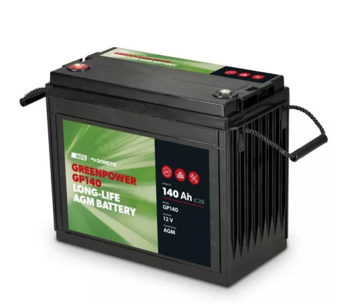 A Dometic NDS GreenPower AGM GP140 lakóautó akkumulátor speciálisan mélyciklusú használatra fejlesztett, karbantartásmentes AGM típusú akkumulátor lakóautókhoz. Fejlett ólom/acél ötvözetű lemezekkel és üvegszálas elválasztókkal rendelkezik, amelyek biztosítják a hosszú élettartamot és a folyadékbiztos működést bármilyen helyzetben.