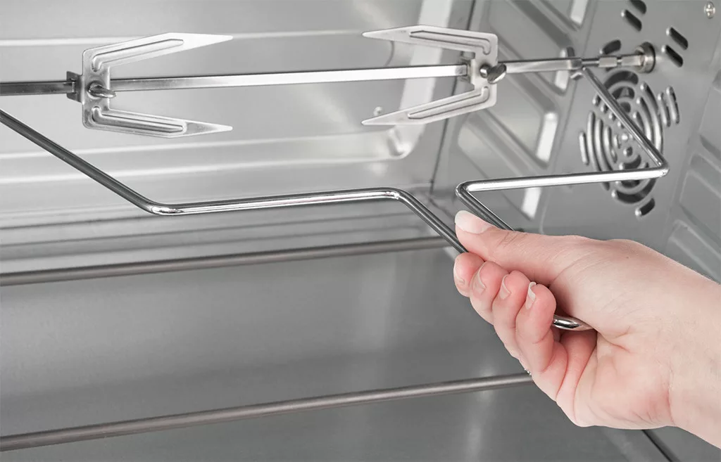 • Tartozékok: tepsi, rostély, grillező nyárs, fogantyú a grillező nyárs mozgatásához, fogantyú a tepsi mozgatásához