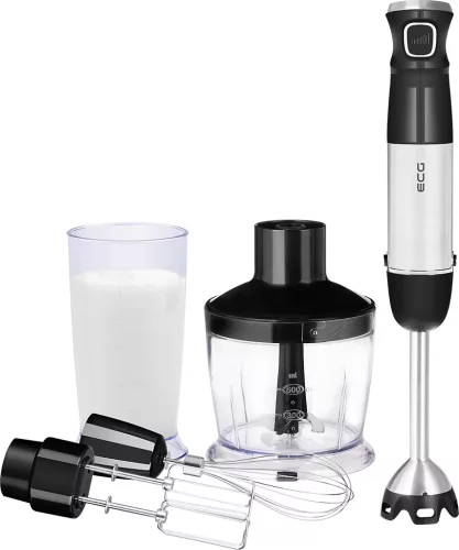 • A csomagban található praktikus tartozékok (zöldség aprító 500 ml-es tartállyal, dupla habverő, dróthabverő, 600 ml-es edény)
