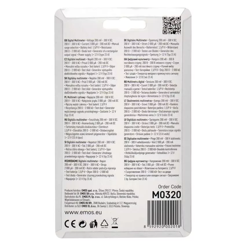 A multiméter praktikus eszköz az elektromos készülékek általános karbantartásakor és új vezetékezés kialakításakor is. A multiméter minden esetben biztonságot nyújt, amikor elektromos rendszerrel kell dolgoznia. - A legfontosabb paraméterek - Tartomány kiválasztása manuális - AC feszültség 200–300 V - DC feszültség 200 mV 300 V - DC áram 2 000 µA 200 mA - Elektromos ellenállás 200 Ohm 2 MOhm - Vezeték folytonossága nem - Dióda tesztelése - Elem tesztelése 1,5 V/9 V - Kijelző megjelenítése 3,5 digit - Lemerülő elem jelzése - Háttérvilágítás - Méretek: 30 × 57 × 95 mm - Lakatfogó multiméter - Táplálás 1× 12 V (tartozék) - Tartozék: akkumulátor, kézikönyv, mérőcsúcsok - Értékesítési csomagolás: 1 db, bliszter
