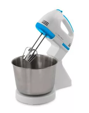 Általános paraméterek típus: Egy tállal Szín: Fehér és kék Erő: 220-240V 50/60Hz Méretek (MaxMéxSz) [cm]: 30 x 29 x 18 cm Felszerelés tartalmazza: 2 habverő és 2 dagasztóhorog technikai paraméterek Tál: Igen Tálkapacitás [l]: 2,5 liter Teljesítmény [W]: 150 Sebességek száma: 7 Egyéb Vezeték hossza: 1 m Könnyen szétszedhető és tisztítható Funkciók impulzus üzemmód: NEM turbó üzemmód: NEM Állványon való munkavégzés képessége: Igen