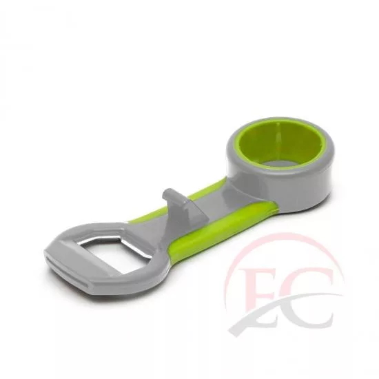 Ennek a praktikus eszköznek a segítségével könnyen lelazíthat egy műanyag üdítős flakon kupakot, felbonthat egy sörösüveget vagy egy doboz üdítőt,  valamint segít a befőttes üveg kupakja alá levegőt juttatni, hogy az könnyebben felbontható legyen.