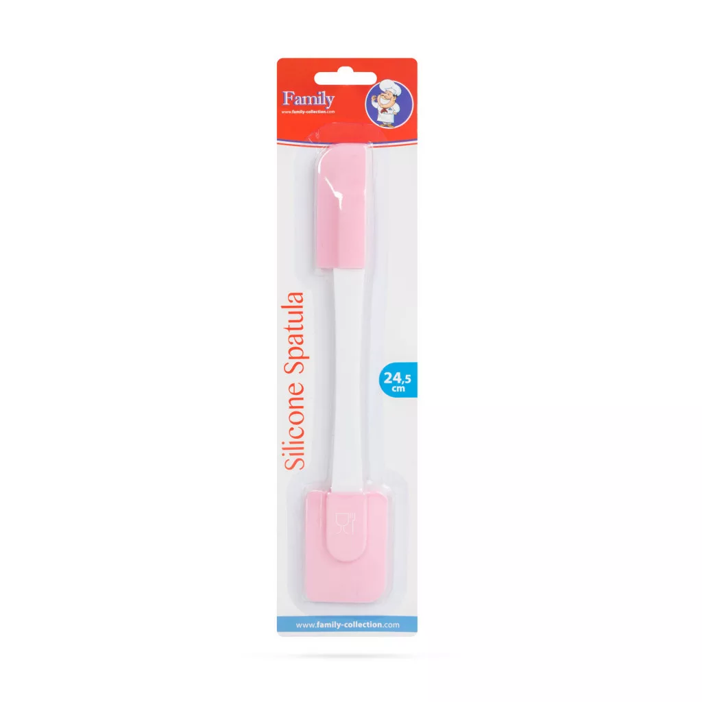 Family 57528B Szilikon spatula - rózsaszín, kétoldalú - 24,5 x 4,5 cm