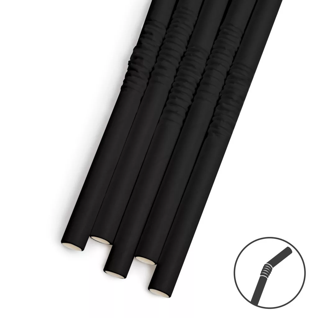 Papír szívószál - fekete - 190 x 4,5 mm - 150 db / csomag