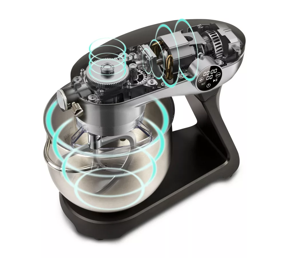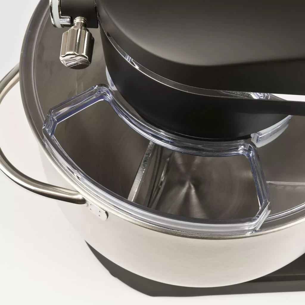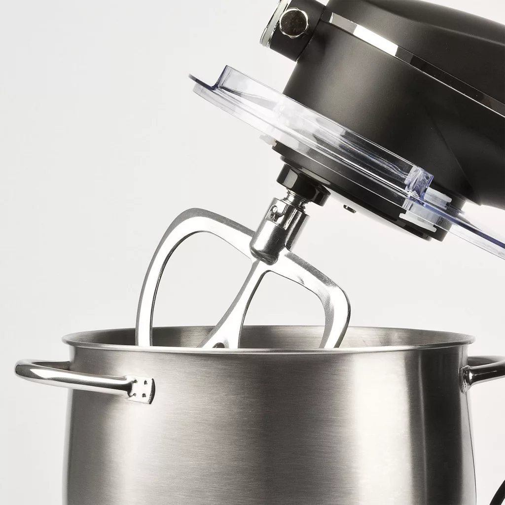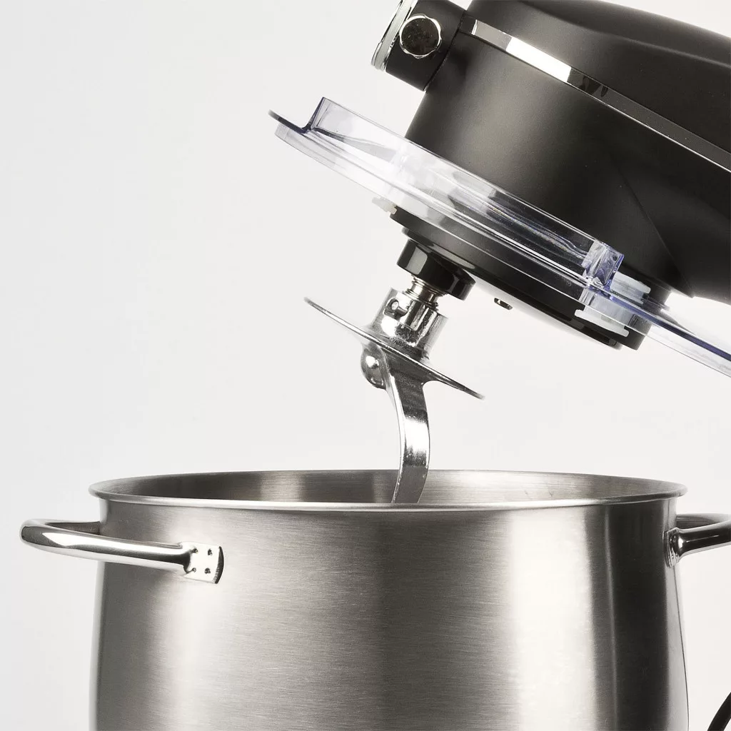 • Tartozékok: alumínium tésztakampó és keverő, rozsdamentes acél habverő (vagy bolygókeverő), átlátszó műanyag fedél