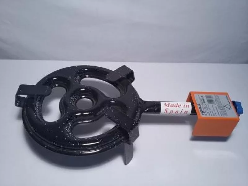 Garcima L-20 paella gázégő, 20 cm, 2 körös. Eredeti spanyol gyártmány és minőség. Tökéletes választás szabadtéri sütéshez-főzéshez, amikor családi vagy baráti társaságot szeretne vendégül látni. Kiválóan használható kirándulások, nyaralások alkalmával is. Akár egy 26 cm átmérőjű paella tál és szeletsütő is kényelmesen elfér ezen a gázégőn. Használata egyszerű. Teljesítménye: 5,65 kW. Anyaga: zománcozott vas. Átmérője 20 cm, magassága 11 cm, szélessége 20 cm, hossza 43 cm. Súlya: 1,26 kg. Állvánnyal is használható, ami nem tartozék a gázégőhöz! Üzemeltetése PB-gázpalackról történhet!  A gázégő használatához nyomásszabályozó és GWPB PB-gáztömlő 10/17 mm ajánlott!