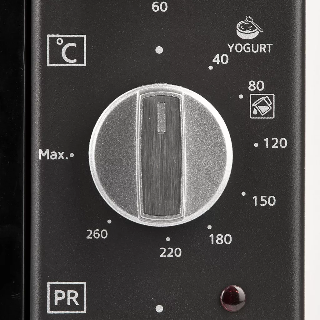 A Grancotto 45 egy elektromos sütő nagy, 45 literes sütőtérrel, ideális akár 40 cm átmérőjű edények tárolására és több étel egyidejű elkészítésére. A belső falak zománcozottak, tisztításuk nagyon egyszerű! A hőmérséklet 40 és 280 °C között állítható, így bármilyen étel elkészíthető az előételtől a desszertig, és öt főzési mód közül választhat, amelyek a hőszellőztetéssel kombinálva egyenletes barnulást és ropogósságot adnak. A 90 perces hangjelzéses időzítőnek és a belső lámpának köszönhetően mindig kézben tarthatja a főzést. A csomag tartalmaz egy grillezőt, egy téglalap alakú csepegtető serpenyőt és egy kerek, 37 cm átmérőjű csepegtető serpenyőt, ideális pizzákhoz, quiche-ekhez vagy desszertekhez.