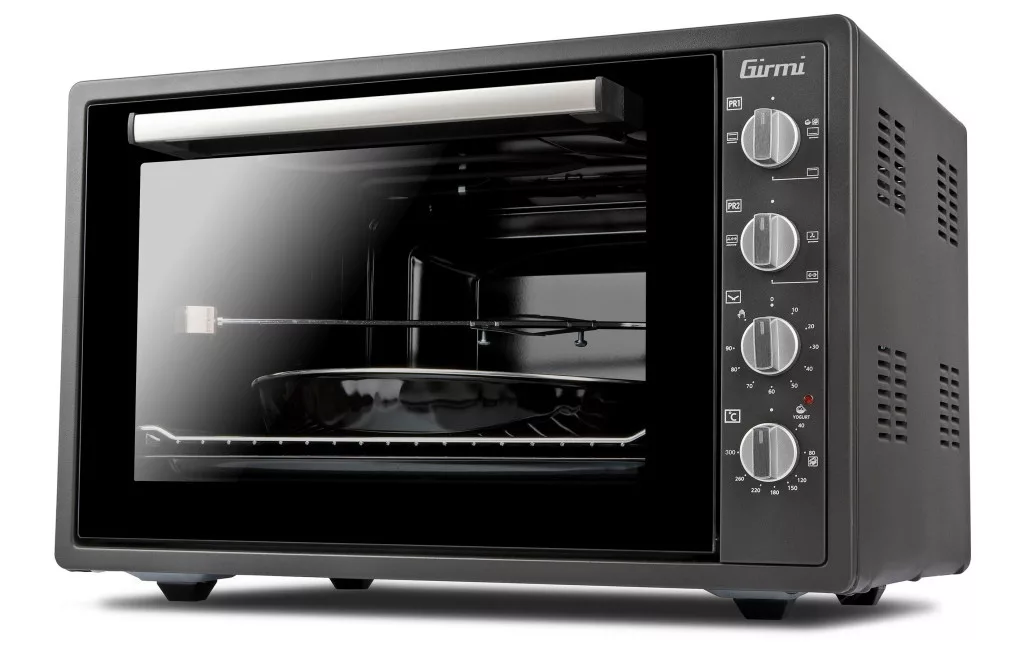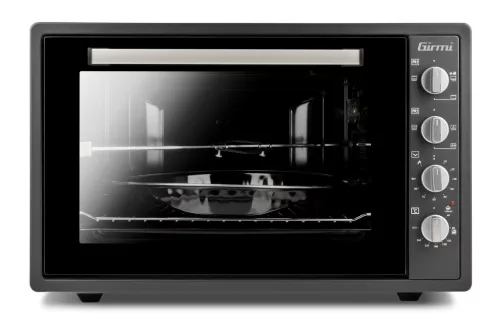 A tradiciónális olasz gyártó, a GIRMI GRANCOTTO 58 elektromos légkeveréses sütője nagyon könnyen használható, és nagyon nagy, 58 literes belső térrel rendelkezik. Egyszerre akár 2 étel is elkészíthető benne. Alacsony áramfelvételének köszönhetően értékes konyhai kisgép. A légkeveréses funkció lehetővé teszi, hogy az ételt rövidebb idő alatti elkészíthesse. Könnyen mozgatható, és kül- és beltéren egyaránt használható. A magas, akár 300 fokos belső hőmérséklet és a speciális kerek tepsi miatt, ez a sütő kiválóan alkalmas pizza és hasonló ételek sütésére is. A grillező nyárs, a grillező rács és a 6 főzési funkció teszi ezt a sütőt „Full Function” készülékké.