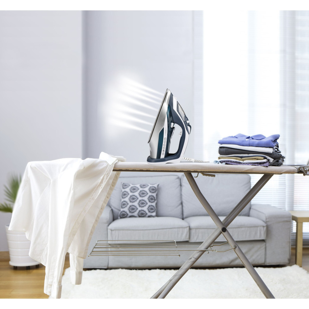 Az ST60 gőzölős vasaló nagy, 450 ml-es átlátszó tartállyal van felszerelve, amely hosszú vasalási autonómiát tesz lehetővé folyamatos utánpótlás nélkül, és nem igényel különösebb karbantartást. Erőteljes gőzfújással rendelkezik, hogy még a legmakacsabb gyűrődéseket is eltüntesse és függőlegesen is használható a függő ruhák és függönyök vasalására. A 91 mikrolyukkal ellátott rozsdamentes acéllemezzel felszerelt, amely garantálja a gőz egyenletes eloszlását a ruhákon. Ez a készülék gőzkész állapotjelző lámpával, hőmérséklet-beállító gombbal és kábeltekercselővel ellátott nagy támasztékkal van felszerelve a maximális stabilitás  és biztonság érdekében.