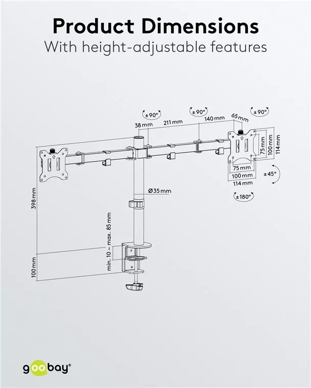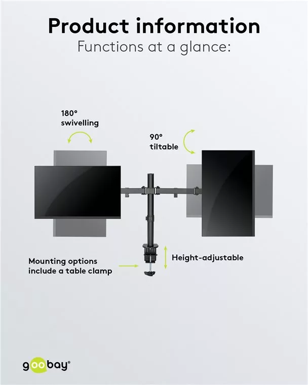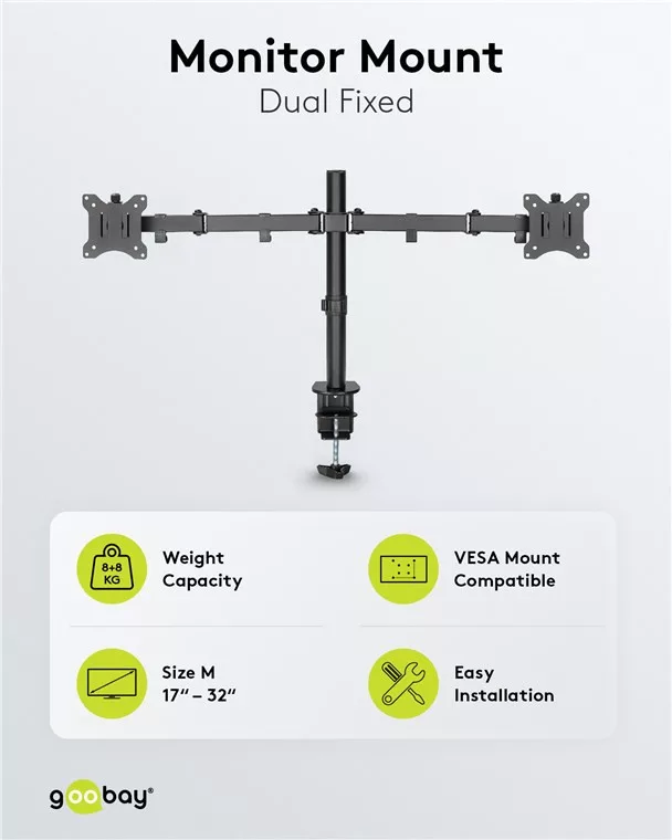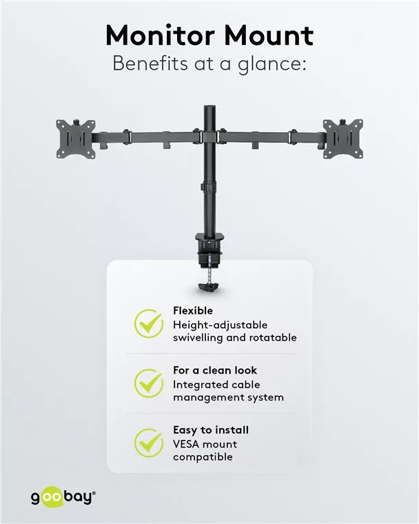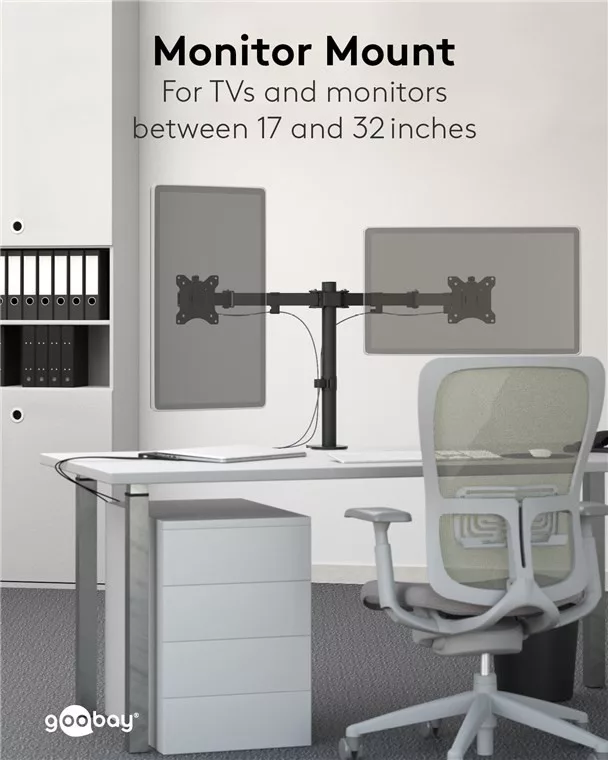 Élvezzen egy rendezettebb, hatékonyabb munkakörnyezetet a Goobay 58529 kettős monitortartó segítségével!
