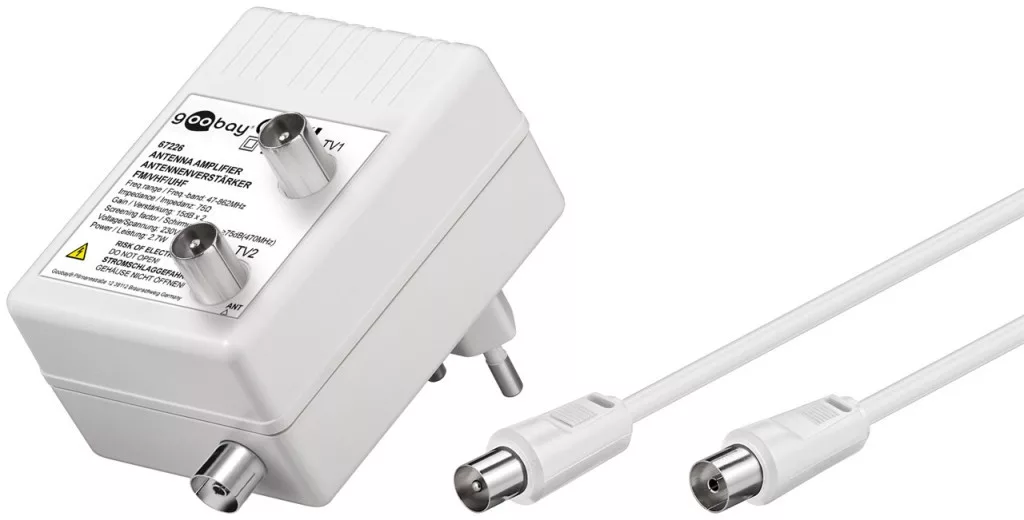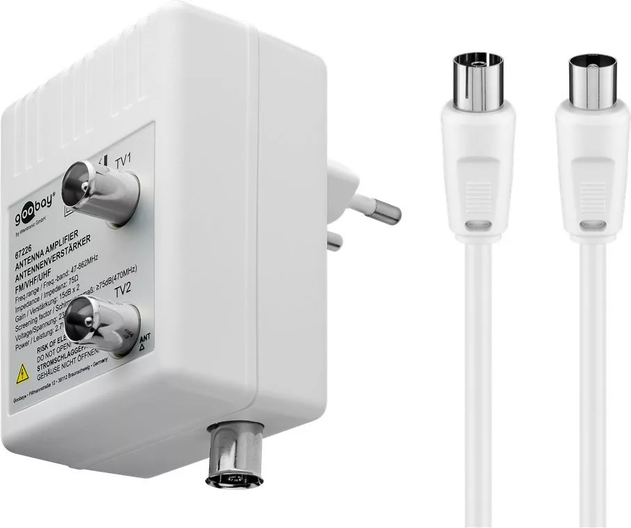 Goobay 67226 Kábel TV erősítő 2x10 dB (DVB-T / DVB-T2 / DVB-C)