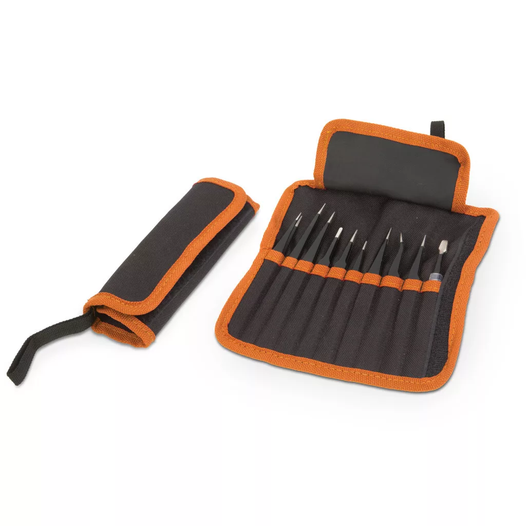 Többféle fejjel rendelkező, precíziós csipesz készlet, amely segítségével a legaprólékosabb munka is pontosan elvégezhető. A széles csipesz kínálatnak köszönhetően mindig a munkafolyamatnak leginkább megfelelő csipeszt választhatja ki. Az ESD védőbevonatnak köszönhetően ideális lehet modellezéshez, ékszerkészítéshez, elektronikai szereléshez. A matt fekete porfestett felület tartósságot és elegáns megjelenést kölcsönöz a szerszámnak. A szett része egy 100% poliészter tárolótáska, amely megvédi a csipeszeket a szállítás közben bekövetkező esetleges mechanikai sérülésektől és rendszerezett, áttekinthető tárolást tesz lehetővé. A táskába varrt tépőzár biztosítja a táska összehajtását és kompakt tárolását.