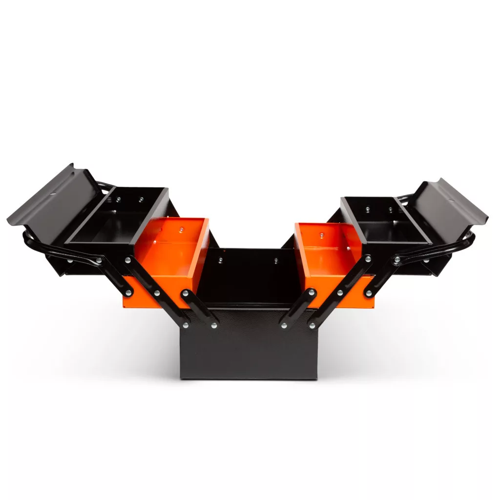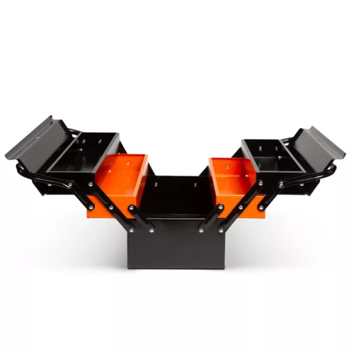Klasszikus elrendezésű, harmónikaszerűen nyitható szerszámosláda. Strapabíró fémből készült, így ellenáll az intenzív használatnak is. A szerszámokhoz történő könnyű hozzáférést a szélesre nyitható felső rész biztosítja. A különböző eszközök rendezetten tárolhatóak, áttekinthetőek és egyszerűen hozzáférhetőek a 3 szintes elrendezésnek köszönhetően.