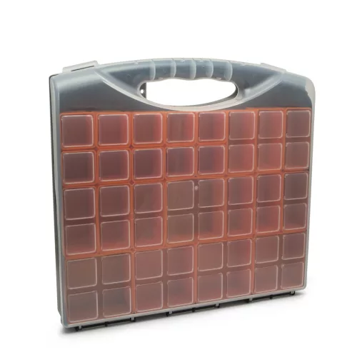 Praktikus műanyag doboz a kisebb tárgyak rendszerezett tároláshoz.