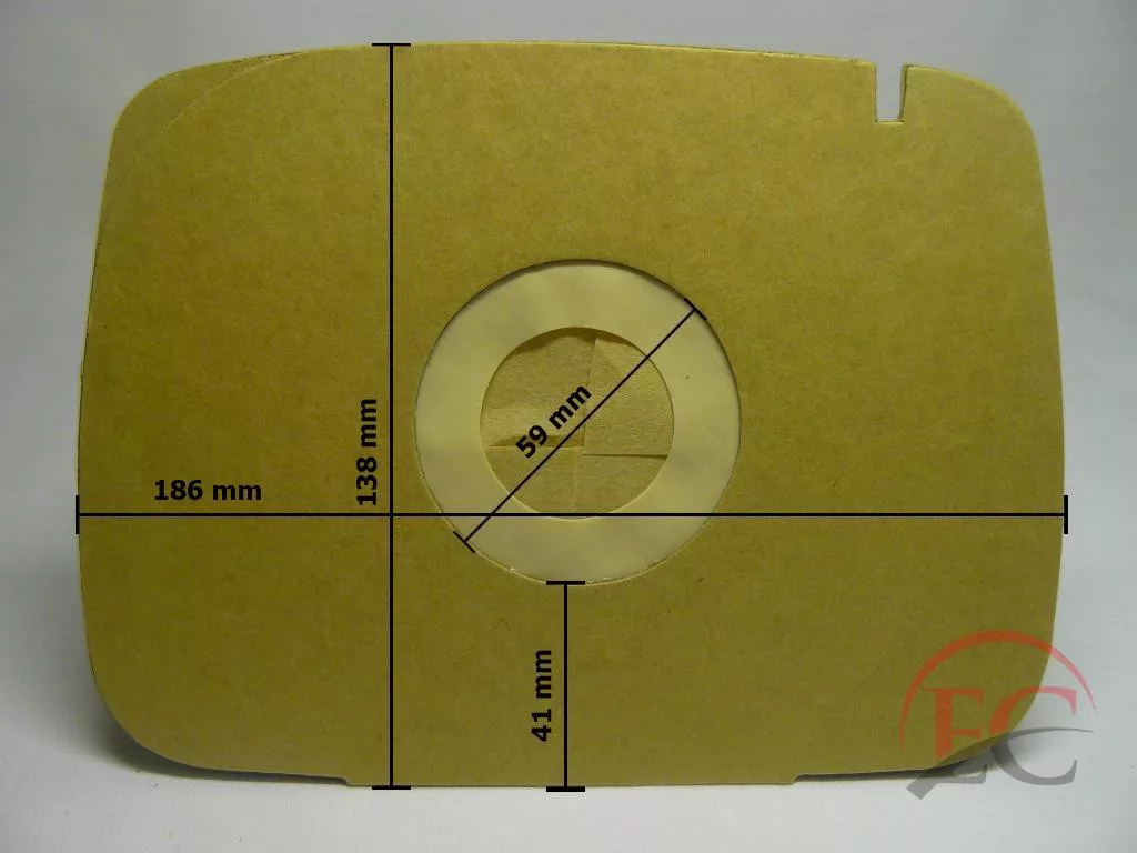 Lyuk átmérő: 59mm Lyuk távolság: 38mm Magasság: 138mm Szélesség: 186mm Zsák hosszúság: 206mm Zsák magasság: 100mm Zsák szélesség: 154mm